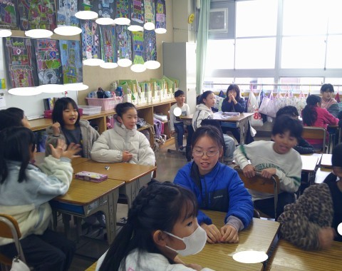 外国語活動では,グループになってゲームをしながら,英語で答える活動をしていました。みんなとても楽しそうです!