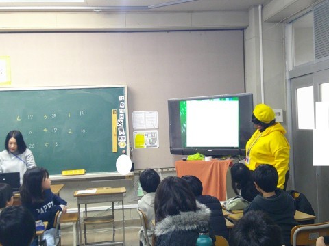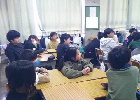 外国語科では,グループになってテレビに映し出される問題に英語で答える活動をして楽しんでいました。