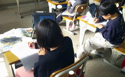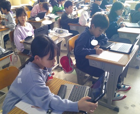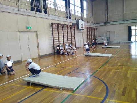 体育では,後転に挑戦していました。ふみきり板をマットの下に入れることで傾斜ができ,まわりやすくなったようで,みんな頑張っていました。生活科では,冬を感じるものを探検して見つけ,タブレットで写真を撮った後,ワークシートに絵や文章でまとめていました。「椿の花」「葉がなくなった桜の木」「柿」「みかん」など自然の中で見つけたものや,「クリスマスツリーの掲示物」など校舎内の飾りを見つけたものなどがあり,季節を実感していました。
