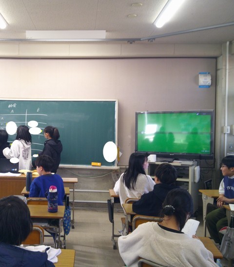 2組では,グループですごろくをして楽しんでいました。1組では,3学期の給食当番を決めていました。