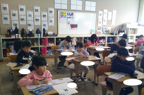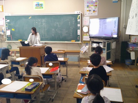 2クラスとも国語の授業の様子です。1組では,詩「のはらうた」の学習をしていました。詩の作者を空欄にして,詩の内容から何の生き物か考えるクイズをしながら,詩の楽しさを味わっていました。2組では,新出漢字の学習をしていました。
