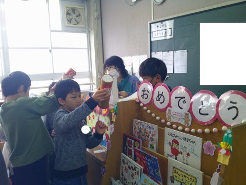 1月16日(金)3年生 公開日 2026/01/16 更新日 2026/01/16 3年生のページ 図書室のお正月コーナーには,おみくじがあります。本を借りに来た子どもたちは,さっそく手に取っておみくじに挑戦!1回しか引くことができないので,ドキドキです。「吉だった!」「大大吉だった!」と喜んでいたり,「凶だった」と少し落ち込んだり。どのおみくじにも,おすすめの本が書いてあるので,その本を読めば運気アップ間違いなし! +1