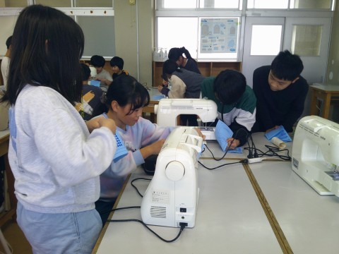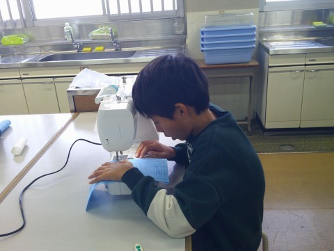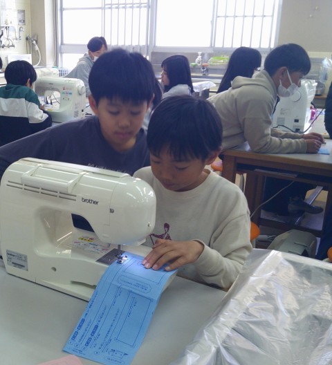 家庭科では,ミシンで縫う活動をしていました。初めは慎重に,ゆっくりゆっくり針を進め,丁寧に縫っていました。