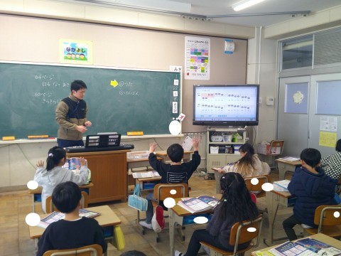 音楽では,季節ごとの歌をいろいろ歌っていました。「きらきらぼし」の曲では,手をキラキラさせる動作をつけて,楽しく歌っていました。