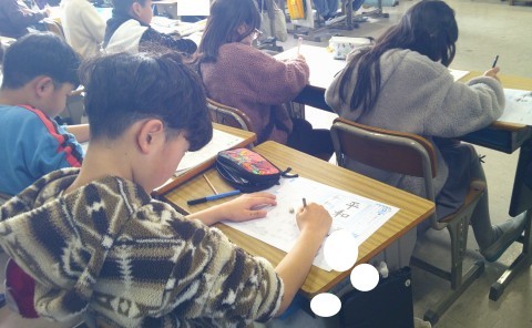 書写の時間では,硬筆をしていました。
