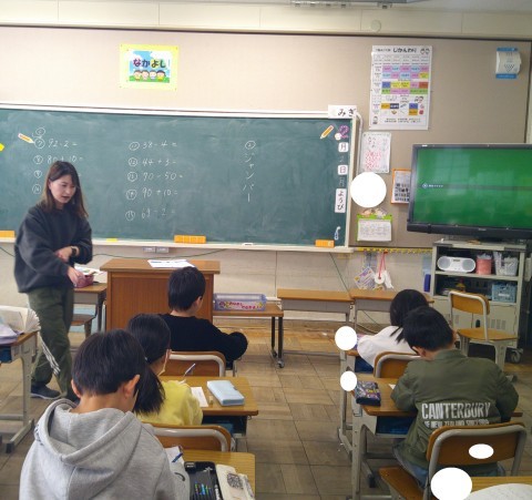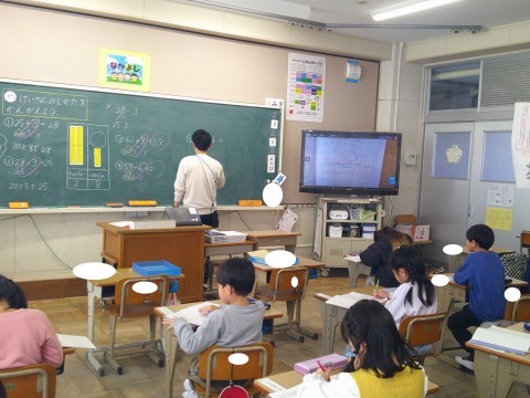 国語では,カタカナで表すものの名前について学習していました。算数では,2桁+1桁の計算の仕方を考えた後,練習問題に取り組んでいました。