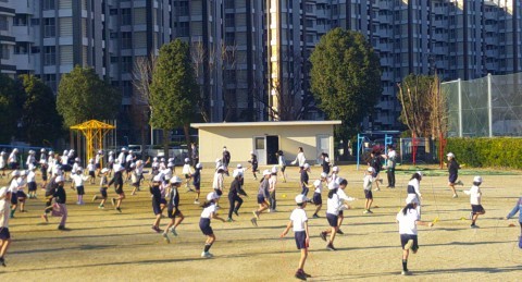 縄跳び朝礼が始まりました。今日は1・3・6年生が行いました。最初に堺っ子体操をした後,リズム縄跳びに挑戦です!みんな頑張っていました。