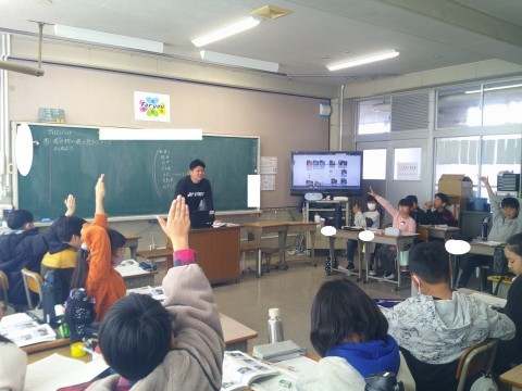 2月3日(火)4年生 公開日 2026/02/03 更新日 2026/02/03 4年生のページ 算数では,小数のわりざんの導入をしていました。水3.6Lを3等分すると1人何Lになるかという問題を,実際に水の量を目で見て確認したり,数直線や図などを使って考えたりしていました。社会では,堺の刃物や包丁について,教科書のまとめをみんなで読んで確認をしながらまとめをしていました。