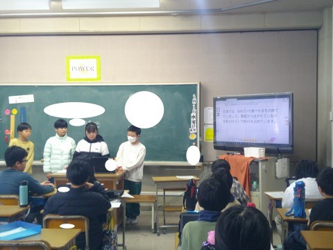 総合では,SDGsについて各グループごとにコラボノートを使ってまとめたことを発表し,改善点などを見つけていました。