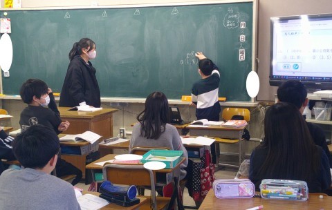 算数では,復習問題に取り組み,自分たちで説明をしながら答え合わせをしていました。