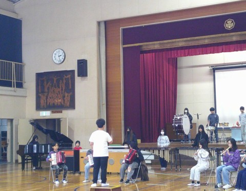 来週に行われる「卒業コンサート」にむけて,体育館で通し練習をしていました。合唱や合奏のほかにもボディーパーカッションなどもありとても楽しいコンサートになりそうです。練習できる日も残り少なくなりましたが,歌声・音を合わせ心を合わせ,頑張ってくださいね!