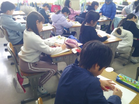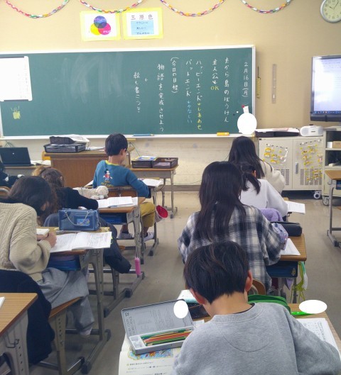 2月16日(月)3年生 公開日 2026/02/16 更新日 2026/02/16 3年生のページ 外国語活動では,グループごとに問題を出し合いながら「What's this?」の学習をしていました。国語では,各自で物語をつくっていました。