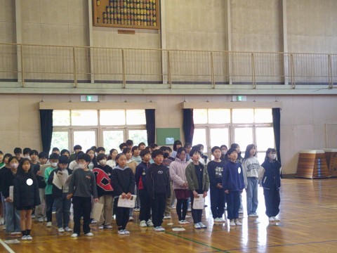 「6年生を送る会」で発表する合唱を練習していました。6年生に思いを込めて歌声を届けましょう。