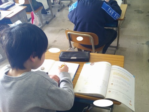 算数では,文章問題に取り組んでいました。とても静かに,集中して問題と向き合っていました。問題をよく読んで,わかっていることとわからないことに線を引きながら考えていました。