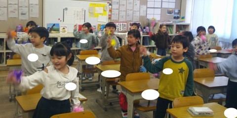 6年生を送る会に向けて,「ありがとうの花」という歌を振付を入れて練習していました。笑顔で歌っている姿がとってもかわいい1年生です。