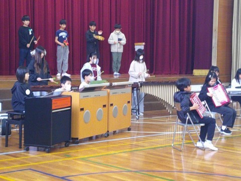 「6年生を送る会」では,1~5年生の拍手でむかえられ,各学年の歌や合奏のプレゼントを優しいまなざしで見つめ,聴いていた6年生。目には見えないけれど,互いを思う気持ちが体育館中にあふれ,心あたたまる素敵な会となりました。6年生も,合奏やボディーパーカッションの発表をし,1~5年生は憧れのまなざしで見つめていました。また,6年生から雑巾のプレゼントもありました。6年生のみなさん,いろいろありがとうございました。共に過ごすことができる日々は,残り少なくなりましたが,その時間を大切にしていきましょう。