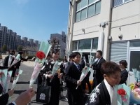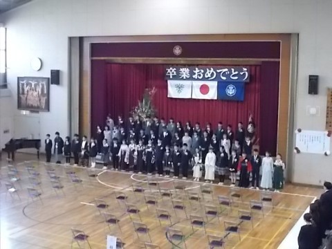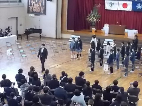 別れの言葉では,6年間の思い出や感謝の思い,そして未来への決意を伝え,「旅立ちの日に」を合唱しました。閉式の言葉が終わり,大きな拍手に送られて,卒業生が式場をあとにしました。