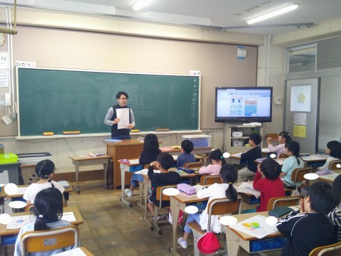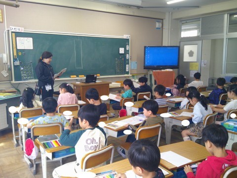 色塗りの学習をした後は,名前を書くようです。先生のお話をよく聞いて,次にすることを確認していました。