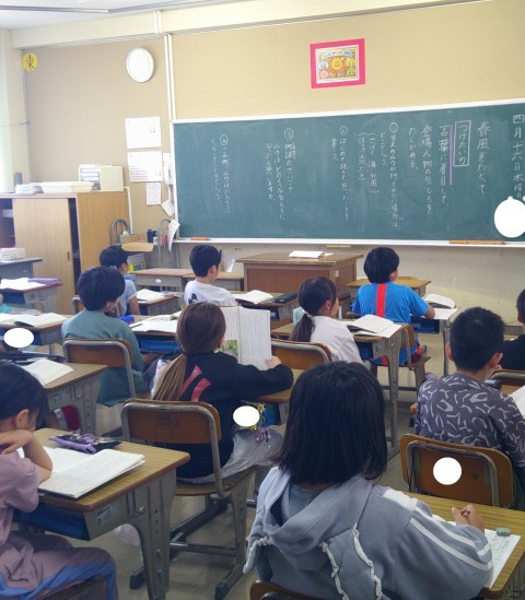 国語では,「春風をたどって」の学習をしていました。算数では,かけ算九九を使った問題に取り組んでいました。