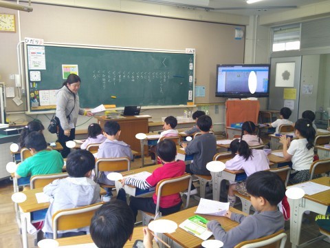 ひらがなの「く」や数字の「4」「5」の書き方の練習をしていました。