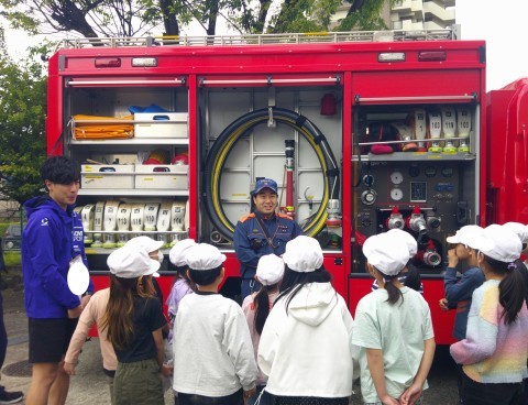 4月21日(火)4年生 公開日 2026/04/21 更新日 2026/04/21 4年生のページ 避難訓練後,消防車の見学をしたり消防隊員の方からお話を聞いたりして,貴重な体験をすることができました。