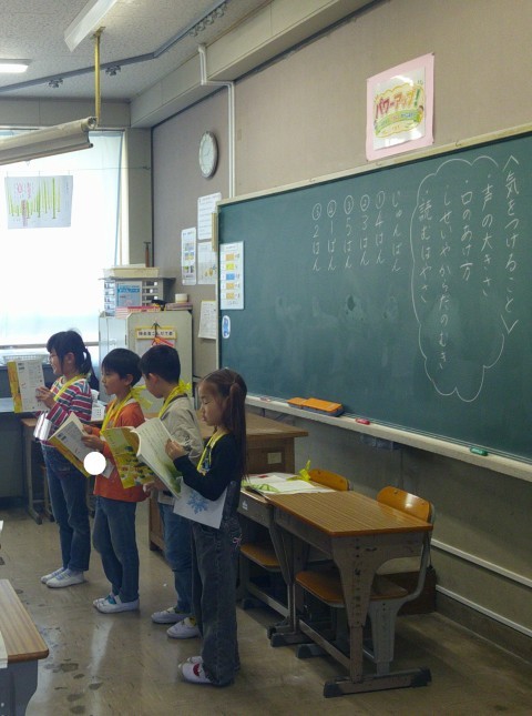 国語の物語文「ふきのとう」の音読発表会をしていました。