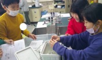 理科では,温度による空気の体積の変化についてグループで実験をしていました。