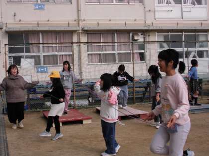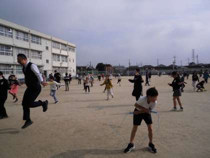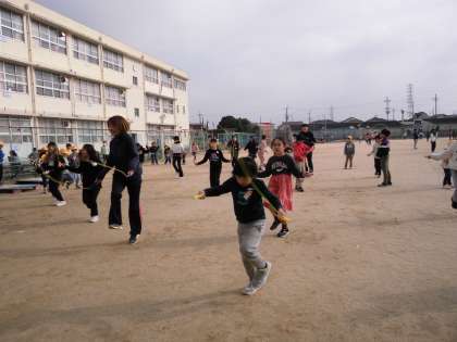 先生たちも一緒に参加していました。なわとび運動は、全身の筋肉をつかいリズム感とバランス能力の両方を刺激する運動です。