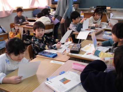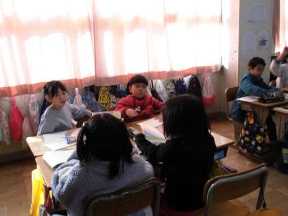 数の表を見て、数の並び方について気がついたことを友だちと交流していました。