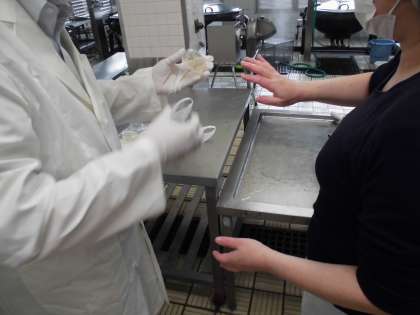 調理場の衛生状態をはじめ、包丁やまな板の衛生状態、きちんと食器が洗えているか、調理員さんたちの手洗いがしっかりできているか、などを検査していただきました。