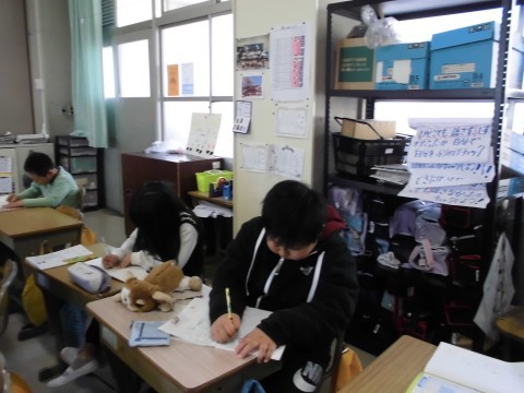 今年の小学校生活を振り返り、みんなに伝えたいことを決め、発表するための原稿を書いていました。