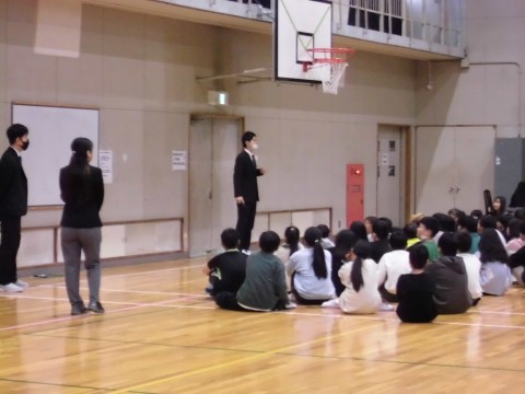 4年生は修了式と離任の会の直後の体育館で、学年会を行っていました。
