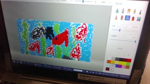 メインの活動は、ペイント3Dでした。ステッカーという機能を使い、絵を作りました。動物の顔を作ったり、虹を描いたりし、活動を楽しみました。