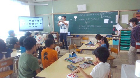 今日のたんぽぽ学級朝の会の図工では、でんでん太鼓を作りました。