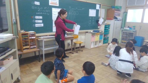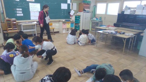 絵本クイズでは,グループの人と協力してクイズの答えを考えていました。最後の問題が難しそうでしたがしっかり話し合っていました。どのグループも協力していて素晴らしかったです。