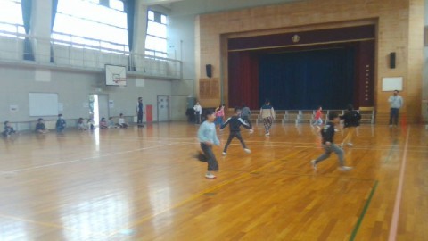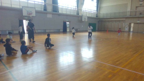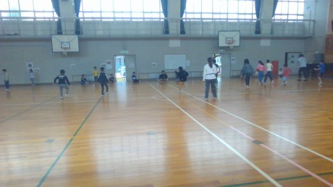「横走り」「後ろ向き走り」「前向き走り」「回転走り」などをしました。ゴールを目指してしっかり走っていました。