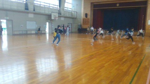 今日の朝の会の体育ではいろいろな走り方に挑戦しました。