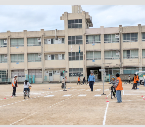1年生の歩行訓練と4年生の自転車訓練のお手伝いを行いました。