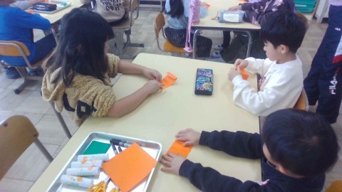 折る・切る・貼るの工程で、これまでの成長が感じられる時間となりました。11月中、職員室前に掲示していますので、ご来校の際はぜひ見ていただけたらと思います。