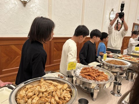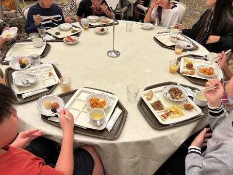 ビュッフェ形式の晩ご飯に、こどもたちは大喜びです。