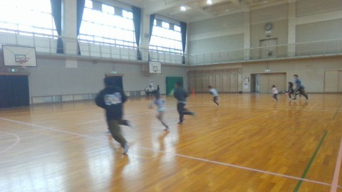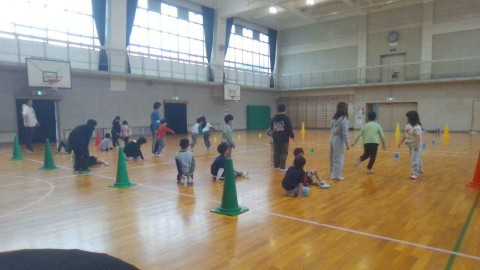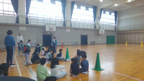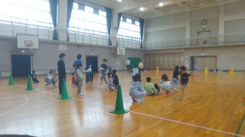 今日はチームに分かれました。お手本を見てから,コーンを折り返してお迎えタッチをしたりジグザグコースを走ったりするなどチームで力を合わせて頑張っていました。最後の人が走るときにはみんなで応援する姿もあり素敵でした。