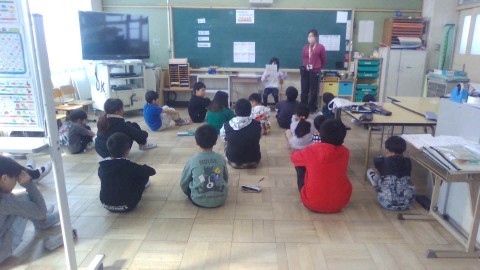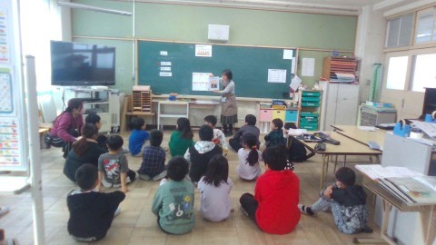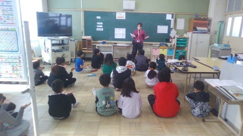 今日の朝の会は図書で、今回も「さいしょとポン!」から始まりました。今年初めてした時から比べると、手を叩く判断がしっかりできるようになり、はじめの言葉が何だったか言う時もかなり揃うようになりました。続けることの大切さを感じます。