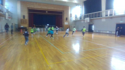 次に「ねことねずみ」を、今回は体育館をいっぱいに使って行いました。笛が鳴るたびに追いかける側が変わるので、こどもたちは笛の音をよく聞いて逃げたり追いかけたりしました。さっきまで追いかけていた相手に今度は追いかけられることになり、とても楽しそうに活動していました。