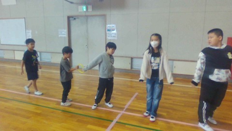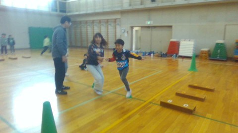 その後はミニ障害物リレーをしました。回数を重ねるごとにバトンの受け渡しがスムーズにできました。順位にこだわらず楽しむことができていたのも素敵でした。