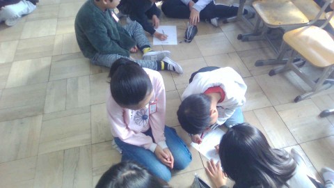 では、いつもと少し違うメンバーでしたが6年生がリーダーとして話し合いをしました。うまく班のメンバーに「どう思う?」、「これでいい?」など聞いている子もいました。