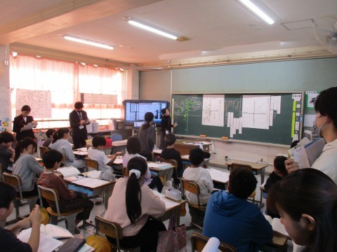 研究授業の後に行われた討議会では、教育委員会から指導主事を招いて指導助言をいただきながら、こどもたちの様子について気づいたことを出し合いました。