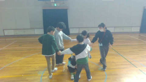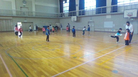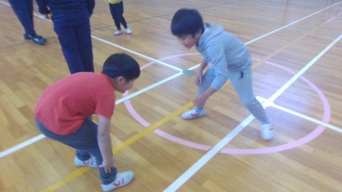 寒い日が続いています。今日の朝の会は体育で、準備体操の後は、相手のひざをタッチする運動をして温まりしました。