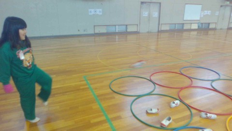 次に靴飛ばしビンゴをしました。2回目には上手に飛ばしてビンゴを作れるようになっていました。
