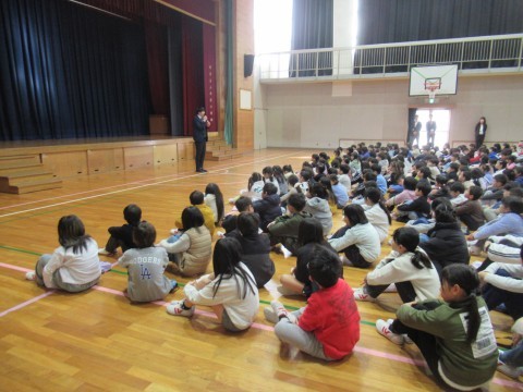 始業式では,午年にちなみ「馬」にまつわる漢字を紹介しました。