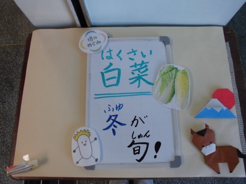 今日の冬野菜スープには,堺市でとれた白菜を使いました。